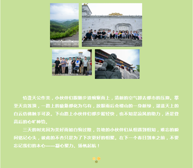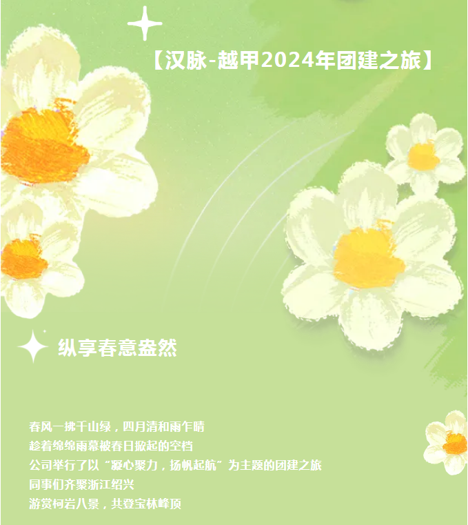 春风一拂千山绿,四月清和雨乍晴,趁着绵绵雨幕被春日掀起的空档,公司举行了以“凝心聚力,扬帆起航”为主题的团建之旅。同事们齐聚浙江绍兴,品味古越文化,流连柯岩八景,共登宝林峰顶。